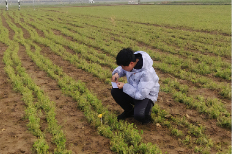 2022级硕士研究生匡宗洋对春耕苜蓿地进行低温损害评估