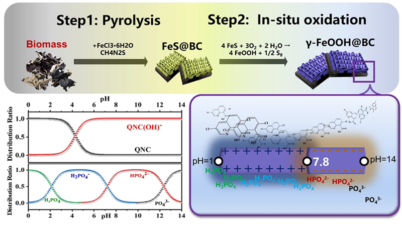 近日,beats365官方网站农用化学材料学科交叉联合实验室在综合领域高水平刊物Chemical Engineering Journal (IF=13.273)杂志在线发表题为“Auricularia auricula biochar supported γ-FeOOH nanoarrays for electrostatic self-assembly and pH-responsive controlled release of herbicide and fertilizer”的研究论文。如今,过量药肥的滥用造成了严重的资源浪费与环境污染,迫切需要发展新型控释农药/肥料体系。本研究在资源化废弃农业生物质目的的基础上,通过制备复合生物炭材料,可与典型农药(除草剂二氯喹啉酸)和肥料(磷素)形成静电自组装结构,并实现pH响应调控释放。在实际土壤或水培环境中,本研究得到的新型材料可结合环境中已存在的有效磷,并且可对稗草进行选择性去除。此工作不仅为农药和肥料的控释设计了一种有效的材料与方法,对于后续控释材料开发及实际环境施用提供了新思路,并在农业生物质资源利用方向取得新进展。