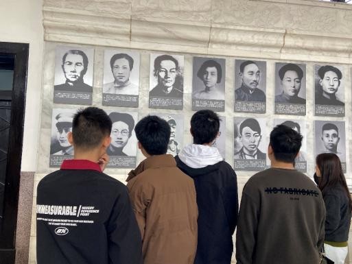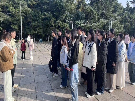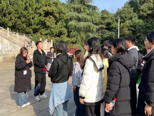 祭奠仪式结束后,同学们在两位主持人的带领下,依次参观烈士塔等红色景点。主持人结合南京大屠杀史实,详细讲解了烈士纪念塔的历史背景与湖南烈士的抗战事迹,深刻阐释“以史为鉴”的核心内涵,让同学们明白铭记历史是为了更好地前行。同时,主持人也聚焦纪念馆内的抗战展品,生动讲述湖南籍先烈在抗日救亡中的英勇贡献,解读纪念塔的建造背景与设计寓意。讲解过程中,“南京大屠杀的起止时间点是什么”“湖南抗战的重要战役有哪些”等历史小提问穿插其中,同学们积极抢答、热烈讨论,在互动交流中加深了对红色历史的认知与记忆。