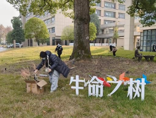 装饰现场一派热火朝天的景象:第一小组的同学们严格按照组装图纸,分工协作完成前院生命树大风车的零件拼接与固定,确保风车稳固美观;第二小组精心挑选色彩鲜艳的风车,串联成灵动别致的风车串,悬挂于前院围栏与长廊两侧,为院区增添了活泼气息;第三小组充分发挥创意,用彩色毛线与温馨祝福挂牌为后院大树“穿新衣”,让庭院焕发勃勃生机;第四小组的男生们合力拆除原有轮胎装饰,换上提前制作的可爱小羊造型摆件,为后院注入满满童趣。各小组同步推进、密切配合,遇到难题及时沟通解决,在规定时间内高质量完成了全部装饰任务。