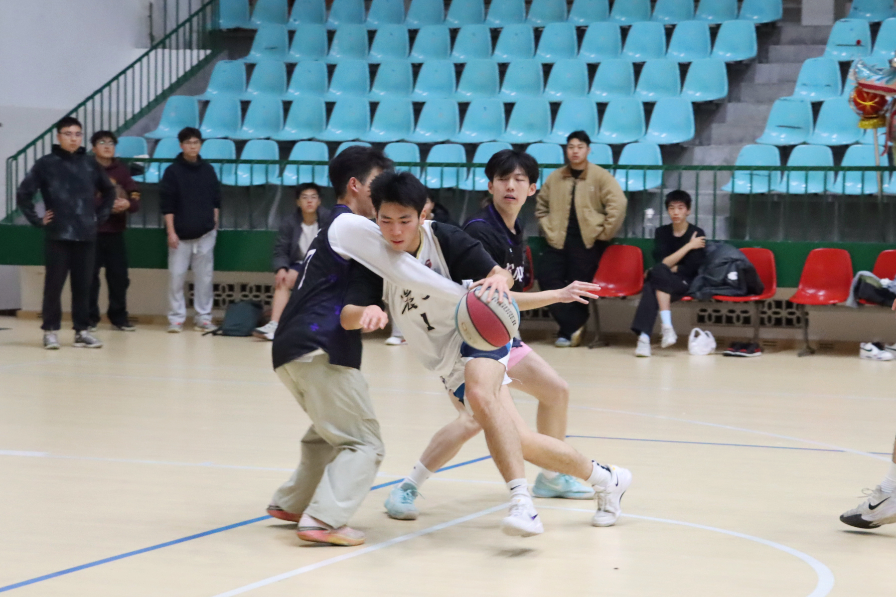 两支队伍实力可谓旗鼓相当,开场便展开针锋相对的较量。在上半场的比赛当中,研究生三队凭借犀利的突破和默契的内线配合频频得分,研究生二队则稳扎稳打,用严密的防守筑起坚固屏障,双方比分交替攀升,每一次攻防转换都扣人心弦,半场战罢,双方比分相当,难分高下。