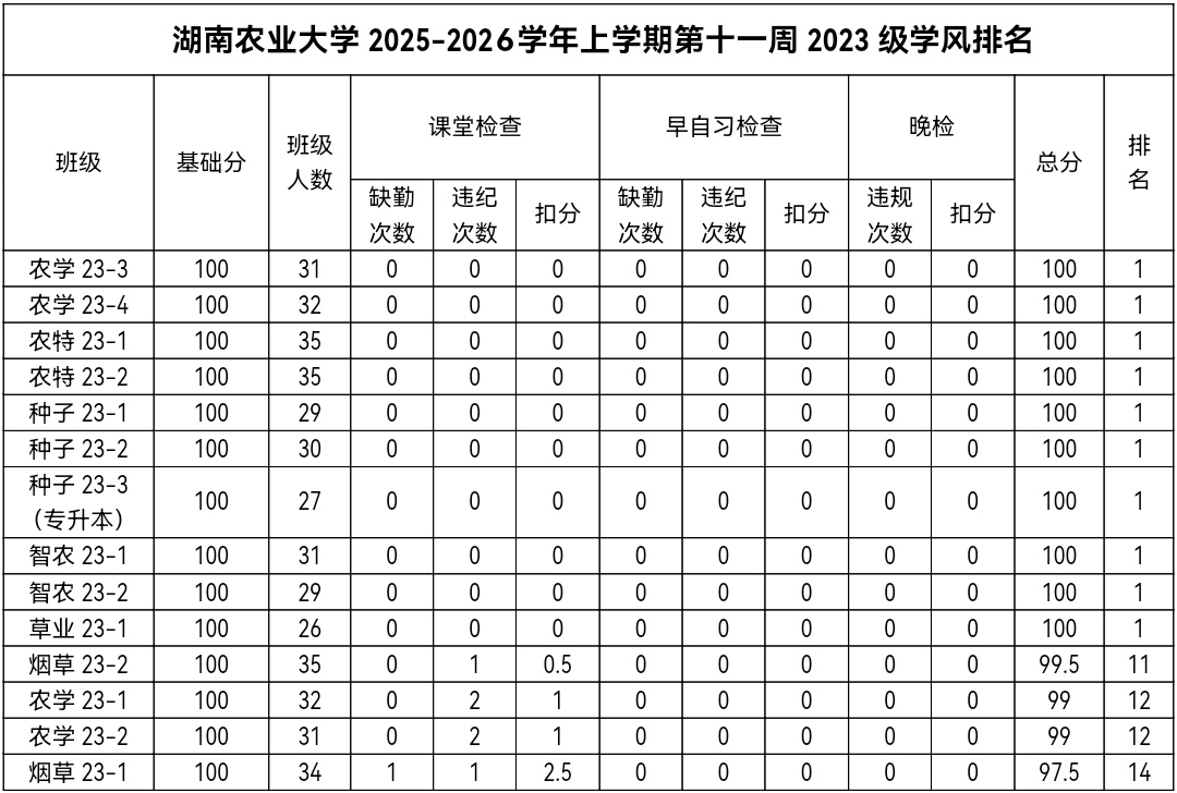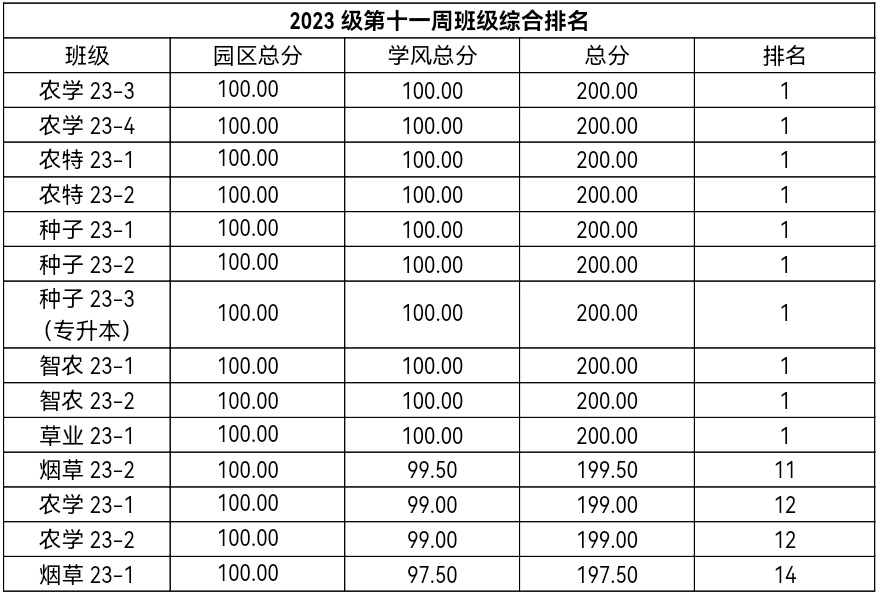 Part 3 | 第十一周班级综合排名