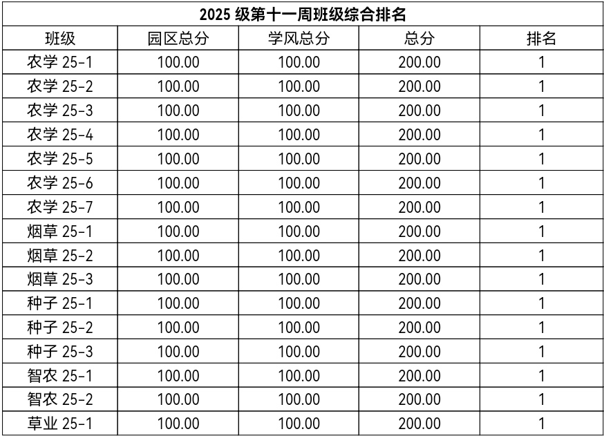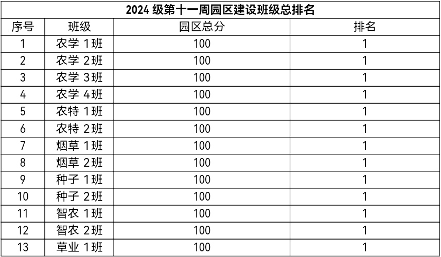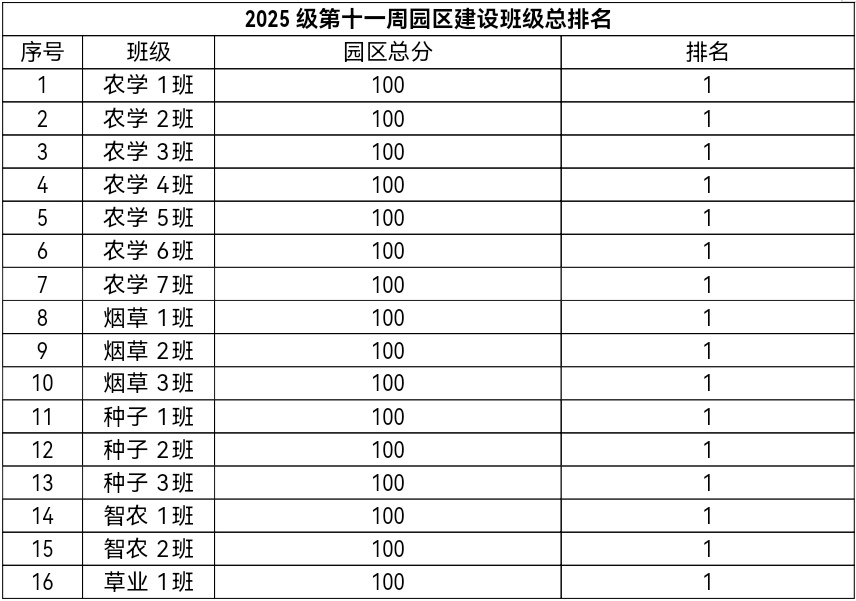 第十一周各年级均表现优秀,卫生情况良好,希望继续保持,同时也希望各年级保持优良作风,切实加强公司园区建设,共创美丽校园。