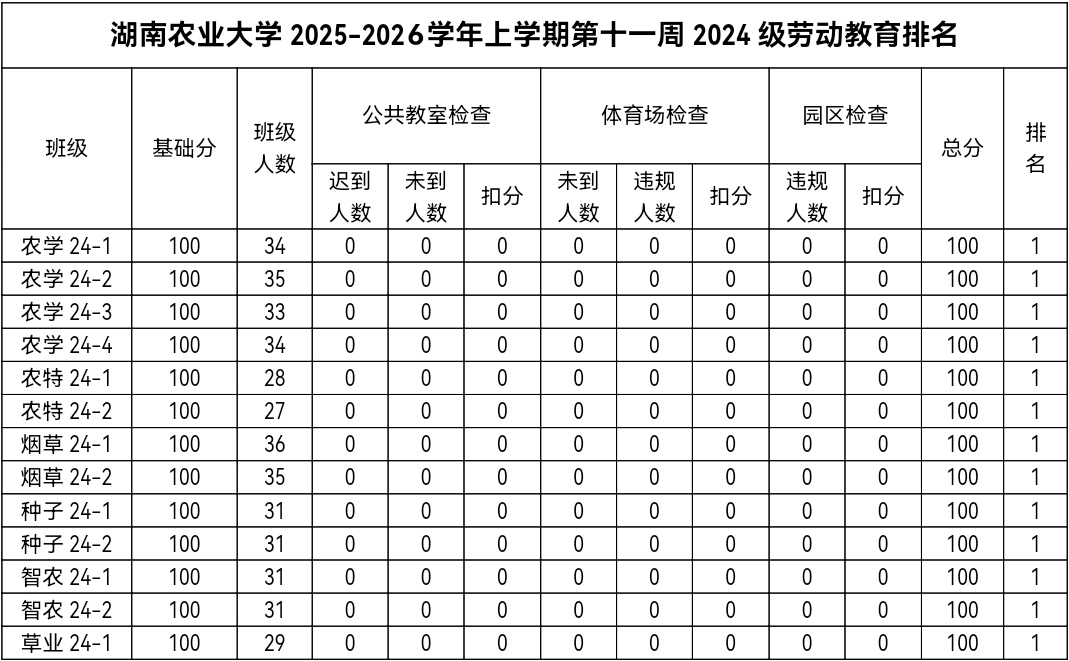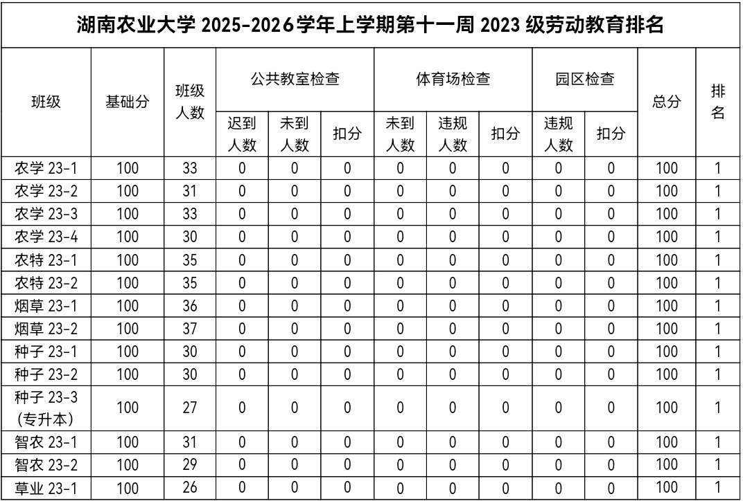 Part 4 | 第十一周劳动教育排名