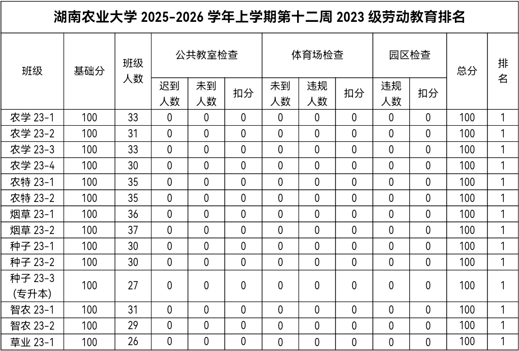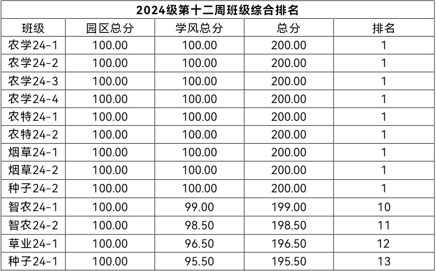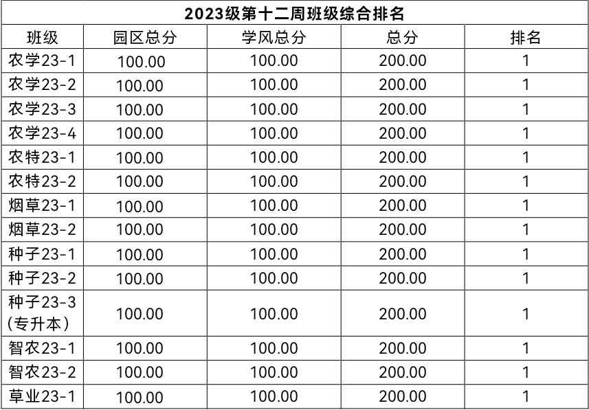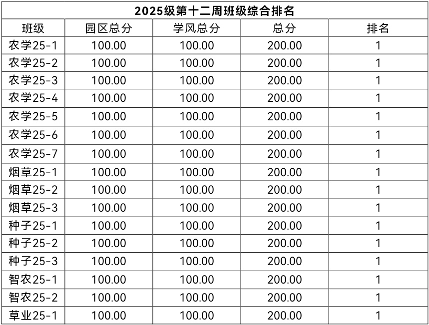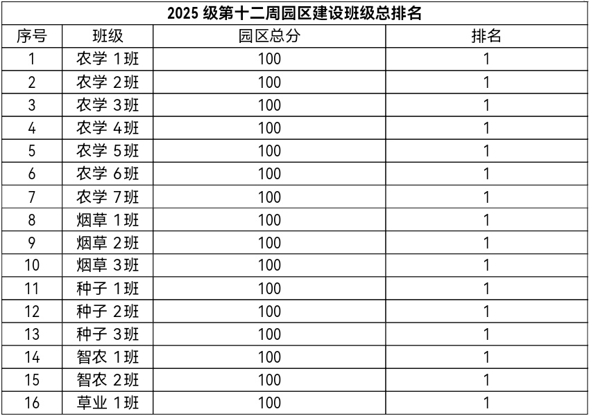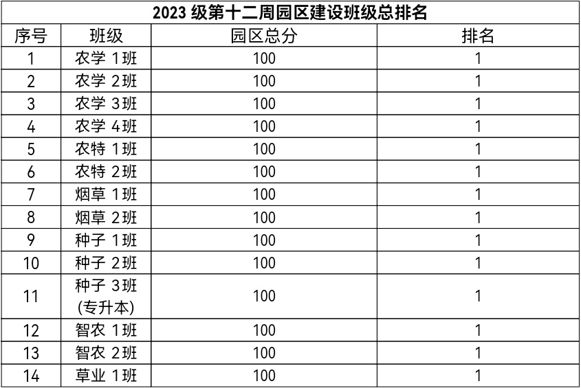 第十二周各年级均表现优秀,卫生情况良好,希望继续保持,同时也希望各年级保持优良作风,切实加强公司园区建设,共创美丽校园。