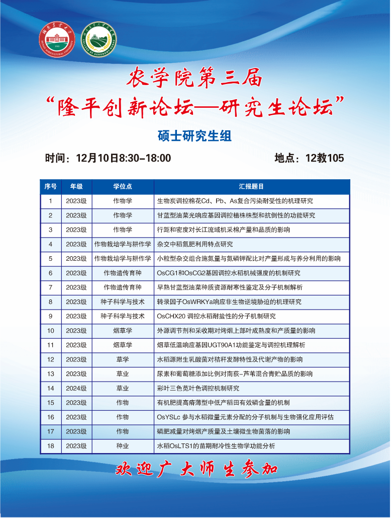 beats365第三届“隆平创新论坛—研究生论坛”—硕士研究生组